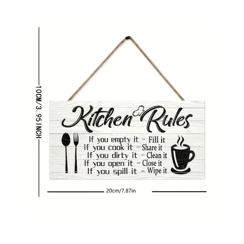 Panneau “Kitchen Rules” à Accrocher – 20x10cm