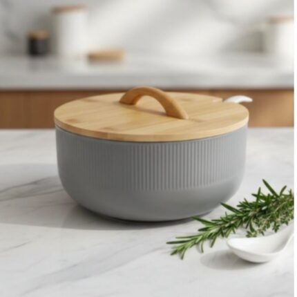 Bol en Céramique avec Couvercle en Bois et Cuillère